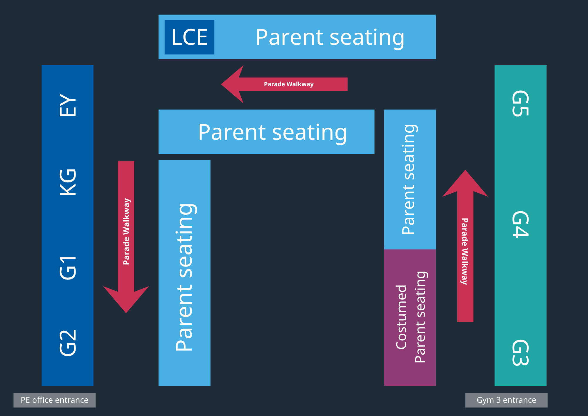 UES Teachers assemble their classes in bleachers on the RIGHT HAND SIDE of Gym 3
