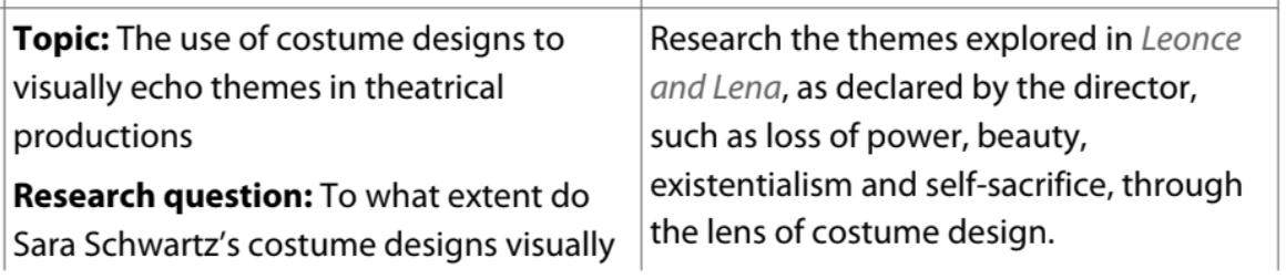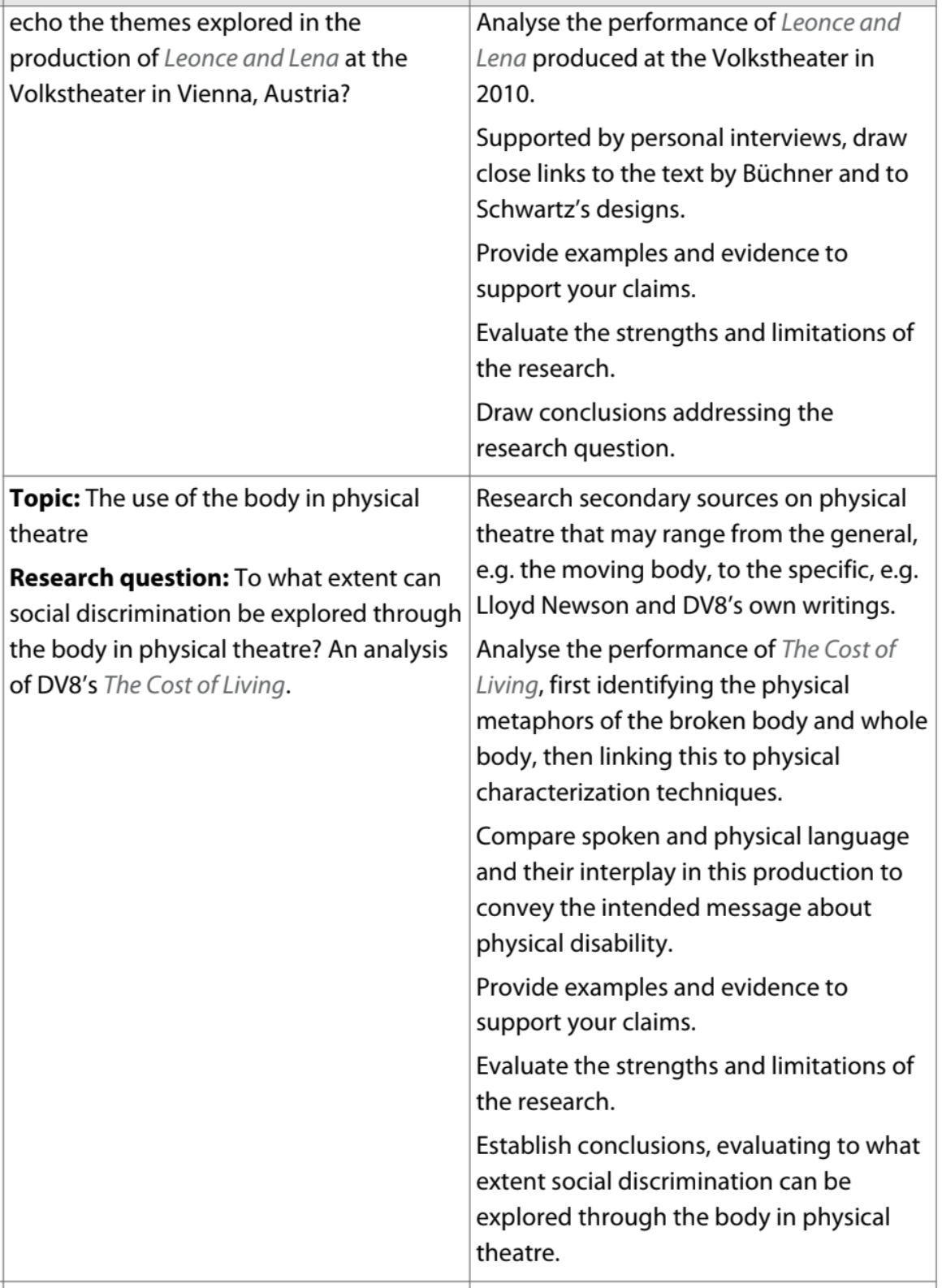It is recommended that essays in other arts subjects include carefully selected visuals—such as screen captures from films, diagrams, scores or set designs—to illustrate and support the developing argument. All such images must be properly identified and cited in the essay, and in a separate list of sources at the end of the essay. All images used must be of a reasonable size and high-quality resolution.
