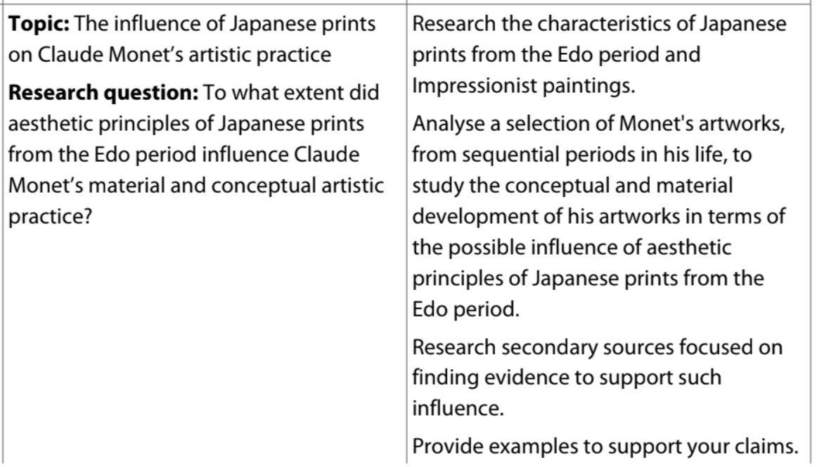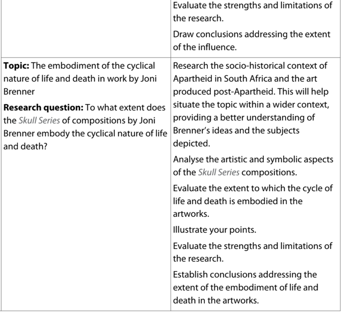You should use artistic terminology and concepts fluently and accurately. You should demonstrate knowledge and understanding of artistic periods, movements and styles when necessary. Your essay needs to show clear evidence of knowledge and understanding for at least one appropriate context that addresses the topic in a meaningful way.